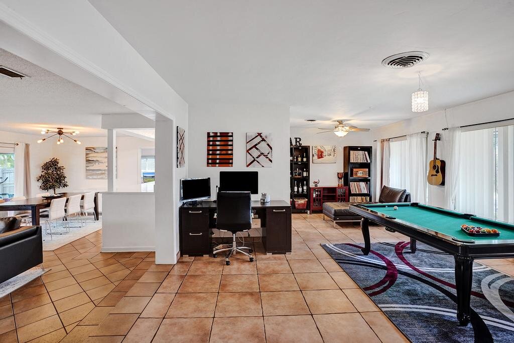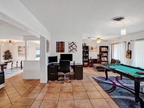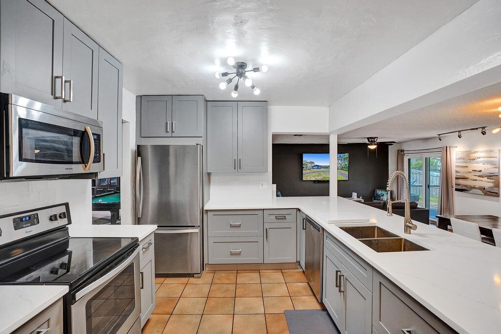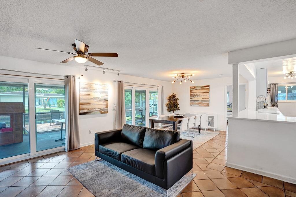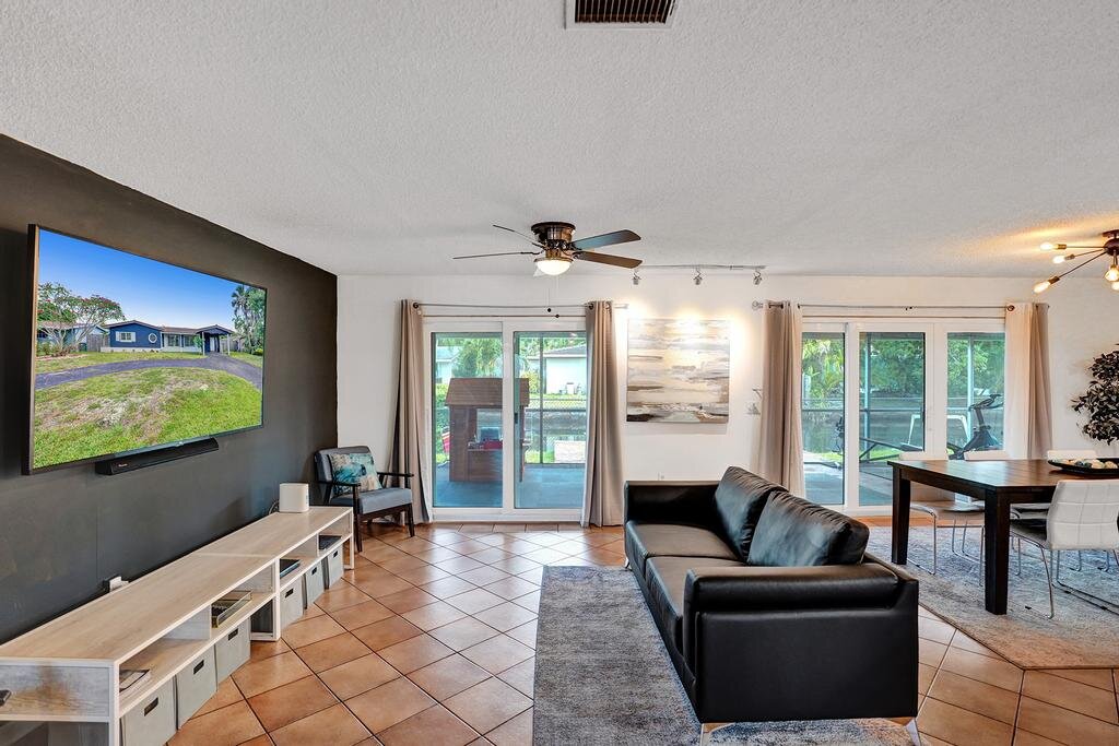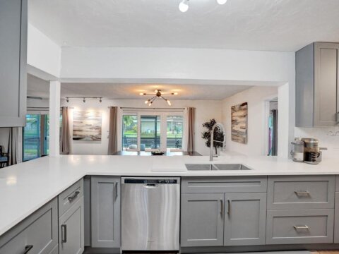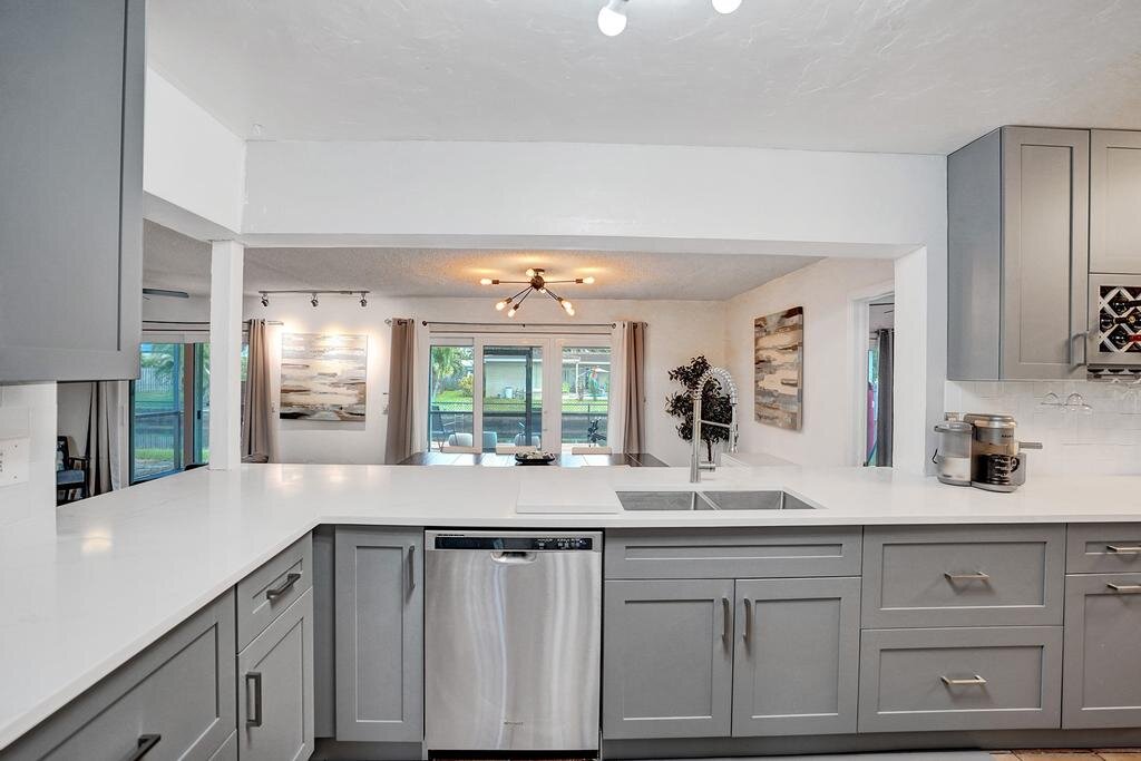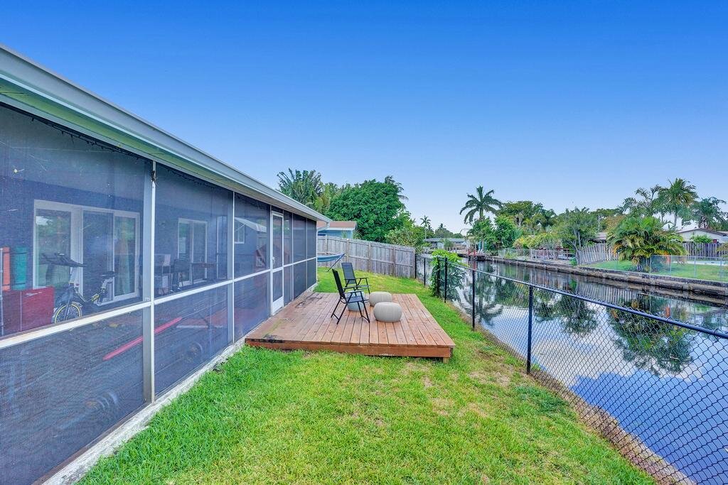 Nicely upgraded and move-in ready. WATERFRONT – OCEAN ACCESS! This home sits on a very low traffic DEAD-END Street. Brand NEW KITCHEN – open concept with SS Appliances. Lots of room in this 1700+ SF living area home for you to entertain or just relax. Great big SCREENED in PATIO where you can sit overlooking the water. Or jump in on your own boat and cruise towards the intracoastal. Fully FENCED to help keep your pets and little ones in. IMPACT WINDOWS and DOORS throughout makes hurricane prep a breeze. Have lots of stuff? Well, there is extra STORAGE SPACE too! WATER HEATER 2020 – A/C 2018 – ROOF 2002 – ELECTRIC PANEL 2005.